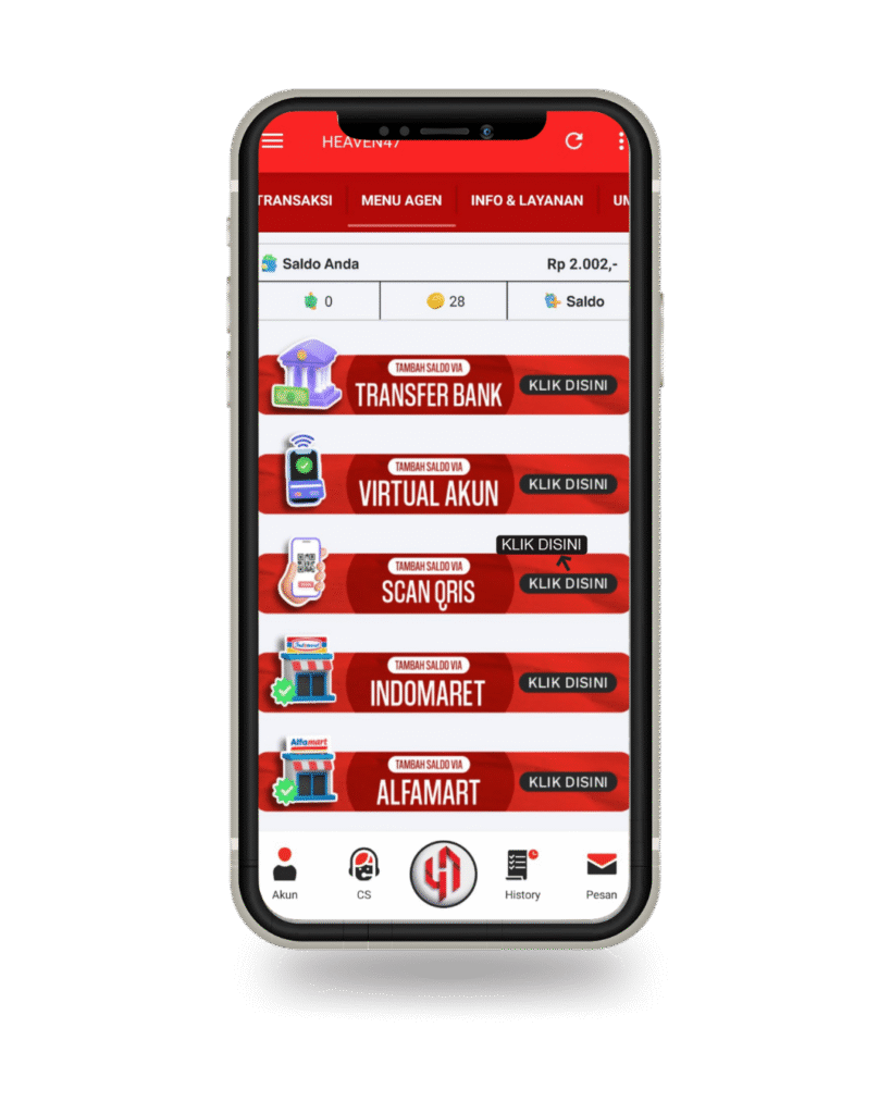 Untuk deposit atau tambah saldo di HEAVEN47 itu minimal 10.000 Rupiah